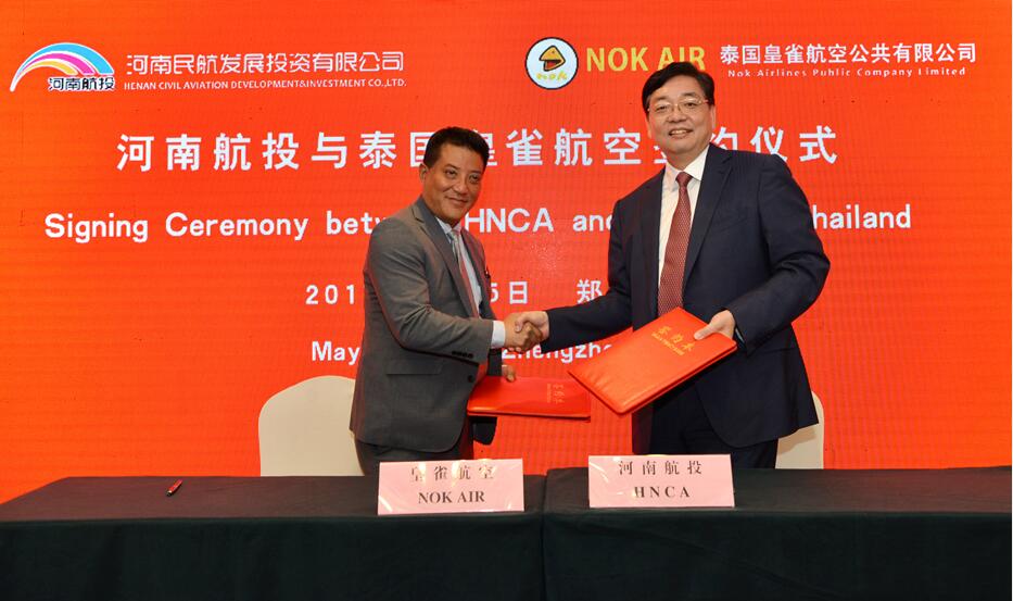 On May 15th , Chairman of HNCA, Zhang Mingchao and CEO of Nok Airlines,Patee Sarasin,signeda MoU. In accordance with the MoU, both parties will carry on further cooperation on aviation and related fields by bringing out the advantages of both parties in order to complement each other and develop joint prosperity。