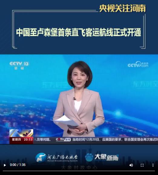 【央視關(guān)注河南】中國至盧森堡首條直飛客運(yùn)航線正式開通