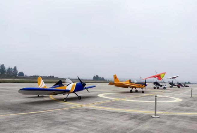 9月29日,登封少林機場正式開航。在當天舉行的開航儀式中,動態(tài)展示環(huán)節(jié)分別進行了輕型運動類飛機通場飛行訓練、登封-上街轉(zhuǎn)場飛行訓練、無人機物流投送演示、無人機植保演示等。靜態(tài)展示環(huán)節(jié)中,共有4架固定翼飛機、2架直升機、20余架無人機及多架三角翼、動力傘、旋翼機進行了展示。