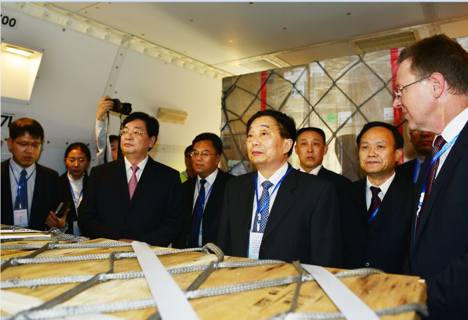 出席盧貨航45周年慶祝儀式的有河南省副省長李亞、省長助理安惠元、省政府副秘書長馬剛。河南航投董事長、黨委書記張明超,總經(jīng)理、副董事長、黨委副書記劉建葆,公司領(lǐng)導(dǎo)班子其他成員及相關(guān)業(yè)務(wù)負(fù)責(zé)人參加了慶祝儀式。適逢盧貨航2015年全球經(jīng)理人大會(huì)在鄭州召開,前來參會(huì)的50多位來自全球各個(gè)地區(qū)的區(qū)域經(jīng)理和重要部門負(fù)責(zé)人與中方人員一起,在鄭州機(jī)場見證了這一具有歷史意義的時(shí)刻?,F(xiàn)場工作人員向機(jī)組人員獻(xiàn)上鮮花,隨后,雙方代表登機(jī)視察。