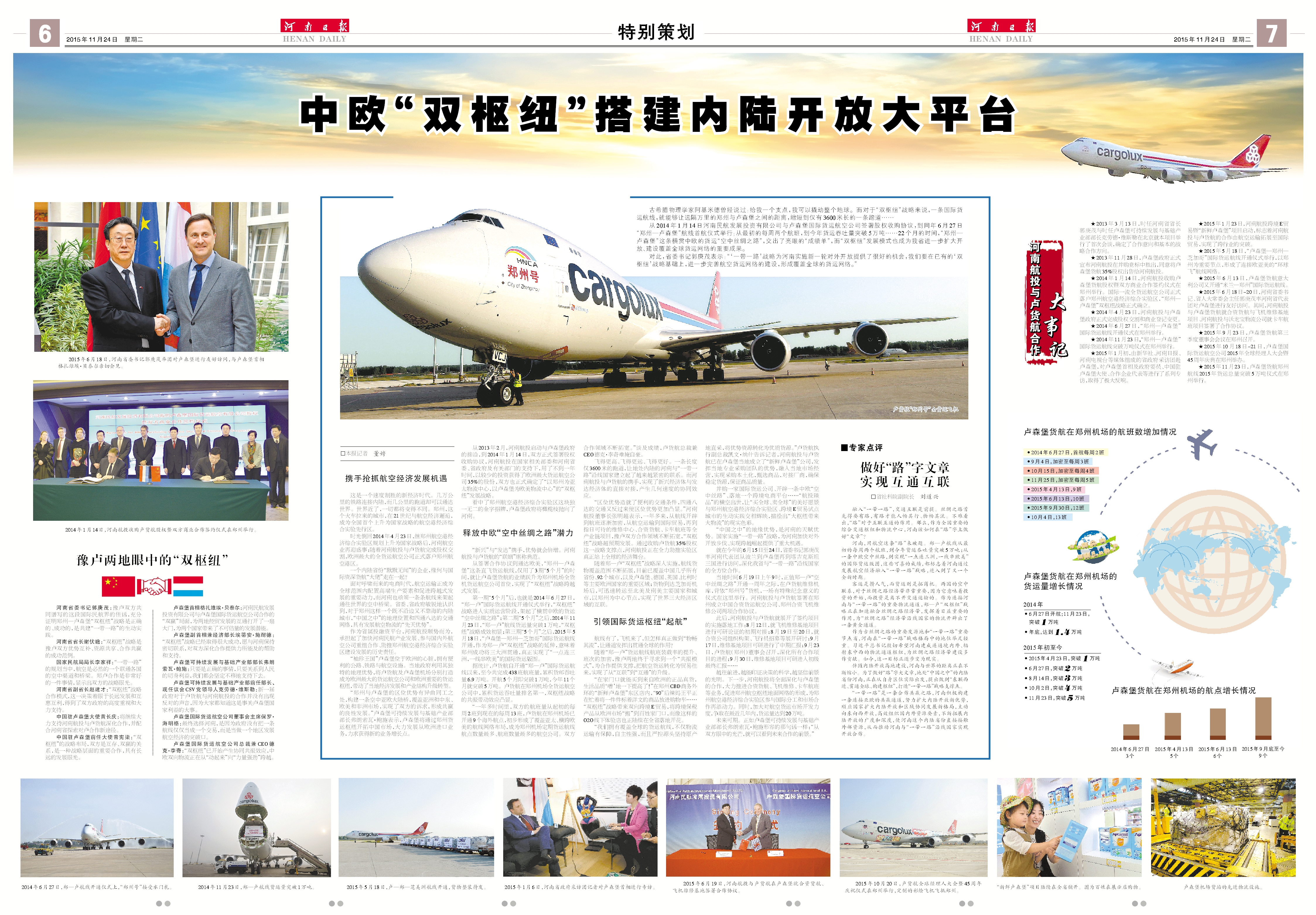 2014年11月23日,“鄭州-盧森堡”國際貨運(yùn)航線突破萬噸儀式在鄭州舉行。