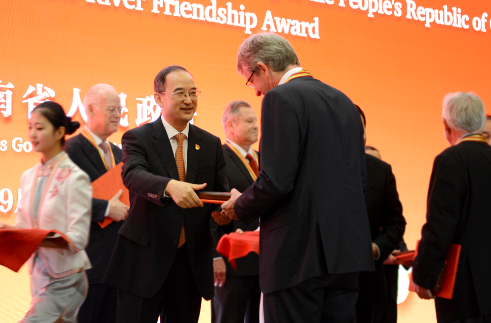 省委、省人大、省政府、省政協(xié)有關(guān)部門負(fù)責(zé)同志,華僑華人、港澳臺同胞代表等參加招待會。據(jù)悉,“黃河友誼獎”是省政府為表彰對河南經(jīng)濟發(fā)展和社會進步作出突出貢獻(xiàn)的國際友人、外籍專家、海外華人華僑和港澳知名人士而設(shè)立的最高榮譽獎。自2000年起,省政府已先后為109人頒發(fā)了此獎。