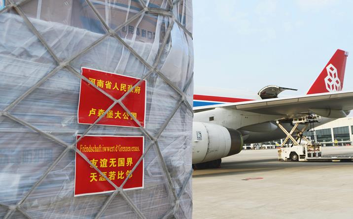 2020年2月,疫情爆發(fā)初期,盧森堡貨航和河南航投共同積極加入抗“疫”戰(zhàn)斗,除了為中國員工提供口罩、消毒棉片、防護(hù)服等物資支援外,還在原定的春節(jié)假期期間,加運(yùn)了95噸醫(yī)療物資馳援中國抗“疫”一線,并根據(jù)國內(nèi)外市場的需要有序增加運(yùn)力。當(dāng)年3月,河南省委、省政府為盧森堡緊急籌措了包括4500件醫(yī)用防護(hù)服、50萬只醫(yī)用外科口罩、5700只醫(yī)用N95口罩、10萬雙醫(yī)用手套、600只額溫槍、2萬瓶洗手液、1080副醫(yī)用護(hù)目鏡等在內(nèi)的首批醫(yī)療物資,并通過鄭州—盧森堡貨運(yùn)航班直接運(yùn)抵盧森堡。鄭盧“空中絲綢之路”被盧森堡政府譽(yù)為“盧森堡及其他歐洲地區(qū)的生命線,是一條雪中送炭的空中橋梁?!痹谶@條絲路的連接下,豫盧雙方成為共建共享、休戚與共的“一家人”。