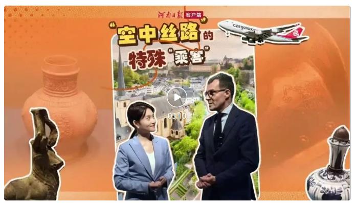 從2013年至今,鄭盧“空中絲路”的建設(shè)在兩國(guó)元首的關(guān)注下取得豐碩成果。從兩家企業(yè)的投資合作,發(fā)展到中盧之間的商貿(mào)往來(lái)、綠色能源、客運(yùn)旅游、人文交流等各方面。2018年,河南航投與河南省文物局簽署合作意向書,根據(jù)約定,河南航投將提供航空運(yùn)輸便利,共同促進(jìn)河南文物的對(duì)外開放和交流、促進(jìn)兩地民心相通,由鄭盧“空中絲路”保障了河南文物從鄭州抵達(dá)盧森堡。當(dāng)年11月在盧森堡開展時(shí),米歇爾·波費(fèi)爾主持了開幕式,河南航投與盧森堡貨航負(fù)責(zé)人一同出席,豫盧雙方在現(xiàn)場(chǎng)達(dá)成深化文化交流的意愿。