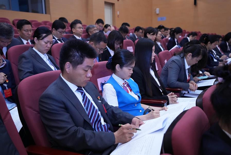 集團(tuán)黨委書(shū)記、董事長(zhǎng)張明超代表集團(tuán)黨委向大會(huì)作報(bào)告,與會(huì)代表在現(xiàn)場(chǎng)認(rèn)真聆聽(tīng)。