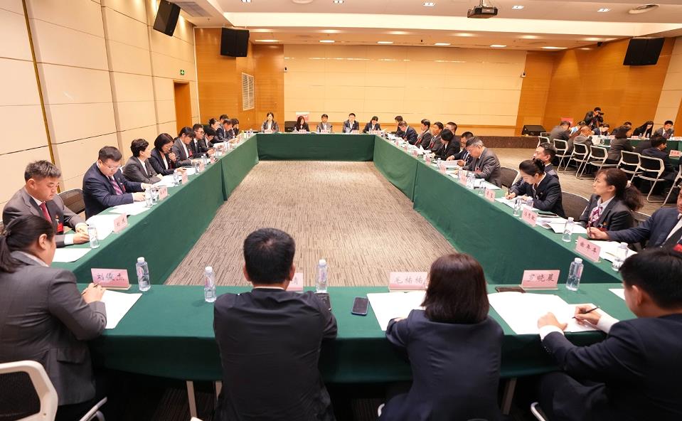 集團(tuán)領(lǐng)導(dǎo)班子成員與代表們討論報(bào)告。